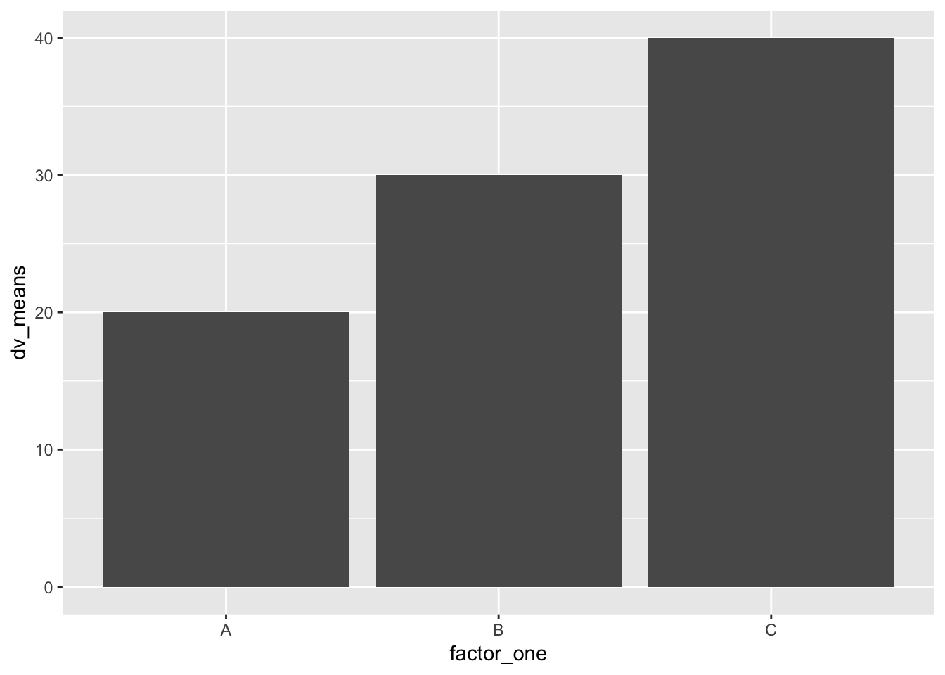 ggplot(plot_df, aes(x=factor_one,y=dv_means))+ #set what will be x axis and what will be the y axis. have a plus to tell it you're adding another layer