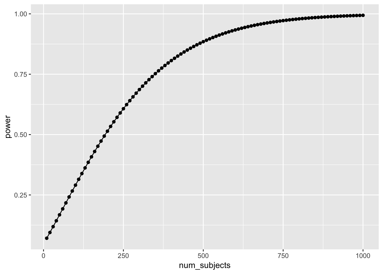 The situation changes somewhat if many more subjects are run. Let’s do the same as above, but run 200 subjects, rather than 20.